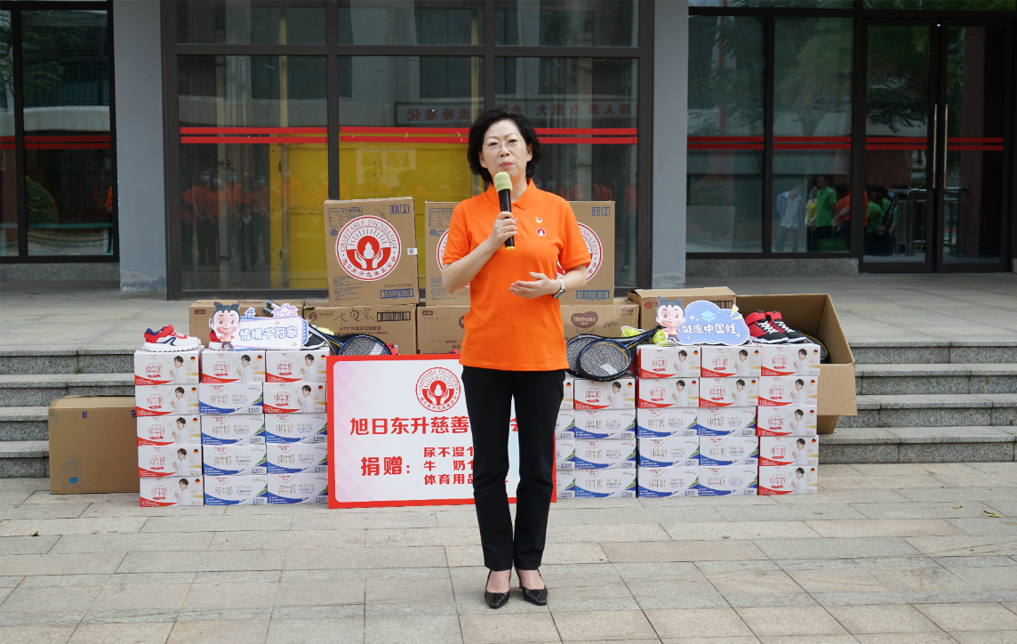 紧接着,海口市社会福利院院长唐凤英致辞。她首先感谢918博天娱乐药业集团、旭日东升慈善基金会7年来,对海口市社会福利院的持续关注和无私帮助。她特别提到,2022年由918博天娱乐药业集团捐资建设的“爱·护”项目医护隔离观察区,帮助福利院的孩子们渡过了疫情防控的难关。今年,熟悉的918博天娱乐人又来到了福利院陪伴孩子们,给予了这里的小朋友们爱的力量。