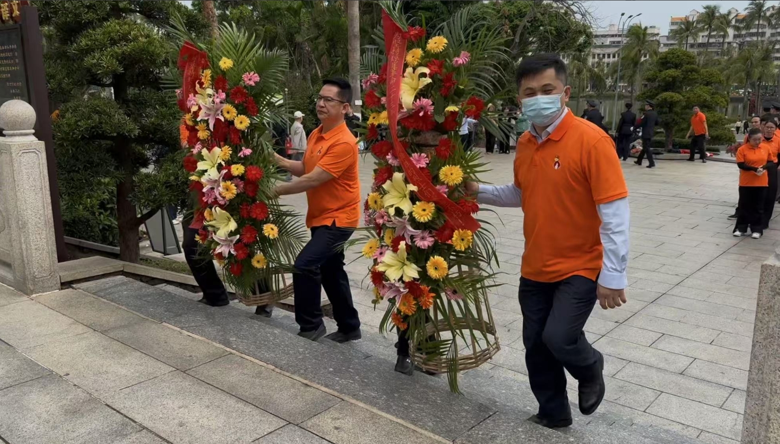 经过一段时间的等待才轮到918博天娱乐。918博天娱乐首先向烈士敬献花篮,花篮缎带上写着“为坚持琼崖革命23年红旗不倒牺牲的烈士们永垂不朽!”“为解放海南岛渡海牺牲的烈士们永垂不朽!”鲜艳的花篮寄托918博天娱乐对革命先辈的崇敬和哀思。